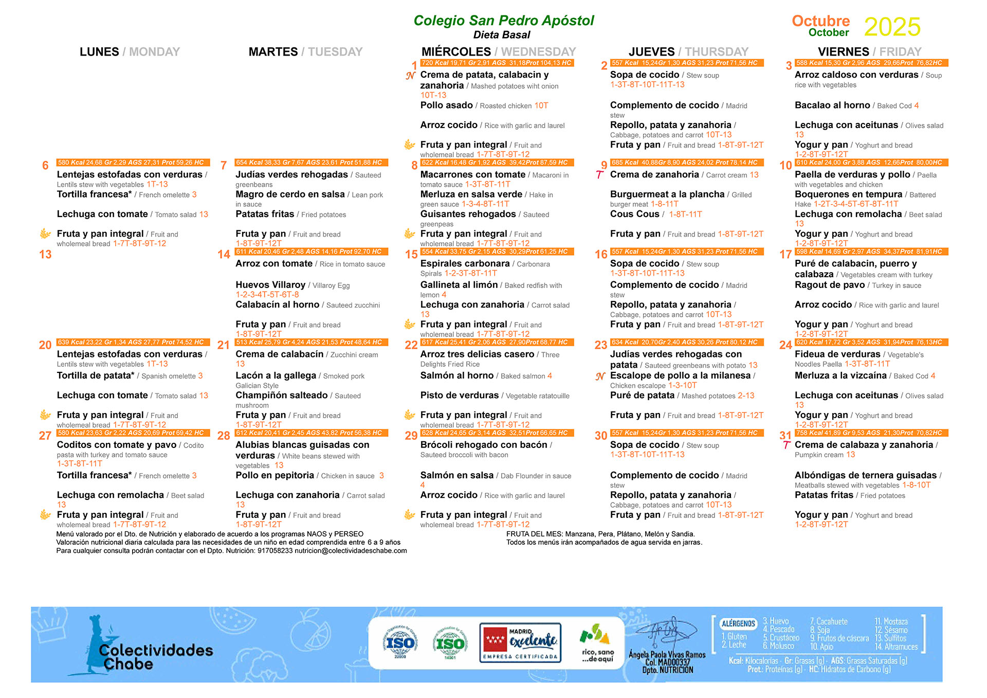 Colegio San Pedro Apóstol Calle Babilonia,19; 28042 – Barajas, Madrid Menú Basal del Colegio San Pedro Apóstol Descargar Dietas especiales del Colegio San Pedro Apóstol Descargar